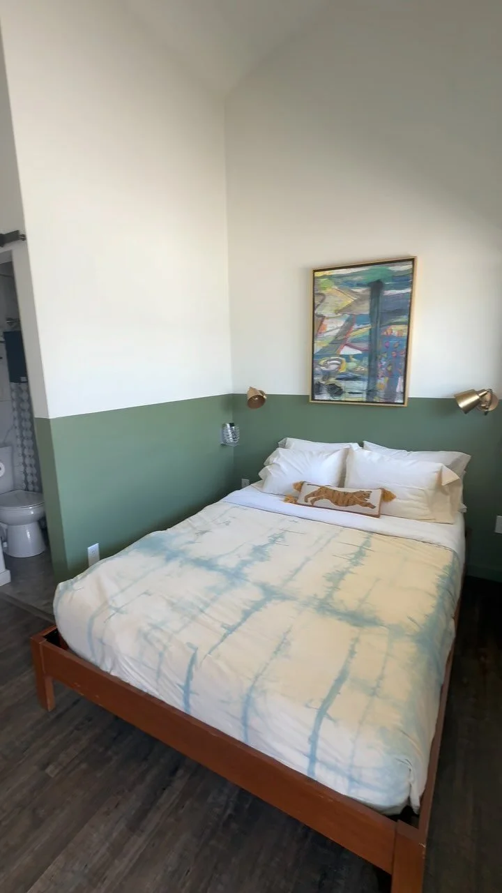 We offer free parking and EV charging on-site, plus our coffee shop, The Lunar Lounge, is open Thursday–Tuesday starting at 6:30AM with complimentary drip coffee for guests, craft espresso, house-made baked goods, and grab-and-go breakfast favorites like burritos, overnight oats, and fruit parfaits.